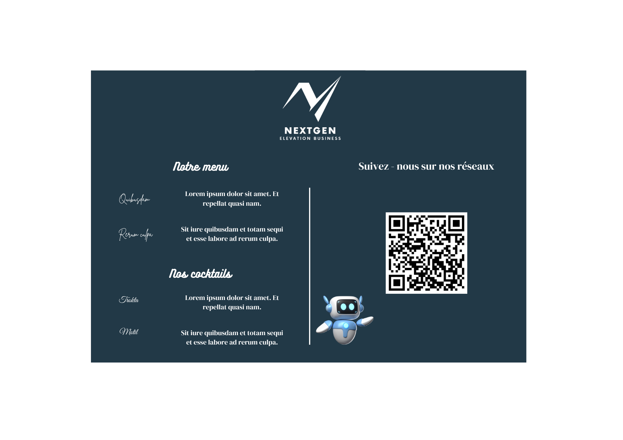 - Impact visuel : un design soigné et élégant qui se démarque et attire l’attention de vos clients potentiels.